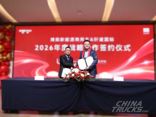 On January 16, 2026, a commercial vehicle export trading company held its annual meeting in Yantai, Shandong Province. WEICHAI New Energy Commercial Vehicles attended the event as a key partner, where the two sides reviewed progress in overseas cooperation, discussed future collaboration, and signed cooperation agreements.