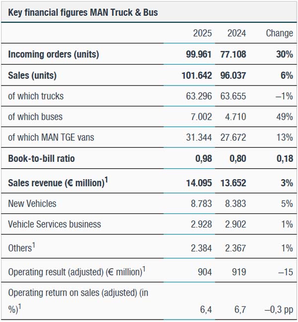 CFO Inka Koljonen: "We have achieved very stable profitability and excellent cash flow results for three years in a row. The fact that we have succeeded in doing so in a persistently weak market environment demonstrates the sustained success of MAN's realignment and is also a result of our intensive work on the cost and cash side. In addition, with MAN2030+, we have a clear plan for the future, which we will now implement swiftly. Our aim is to continue to improve our performance and further strengthen our resilience. For 2026, we expect a slight recovery in demand in the core European truck markets and continued good demand for buses and vans. We anticipate further growth in electromobility, especially if the framework conditions continue to improve.”