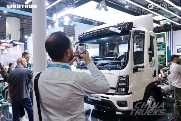 As part of its ongoing push into new energy, SINOTRUK showcased two models: the C3HE electric light truck and the Pioneer EV.
