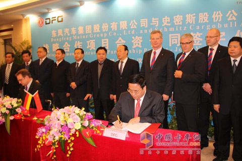 www.chinatrucks.com. The joint venture contract for strategic cooperation was signed between Dongfeng Auto and Germany Smith Corporation in Wuhan. Leaders from Hubei government and the two companies, including Zhu Fushou, executive director of Dongfeng Auto and Ulli Schumer, president of Smith Corporation, attended the ceremony.