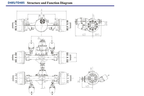 485 product is a heavy truck drive axle indepently developed from 2011 to 2014 on the basis of fully absorbing US Dana drive axle technology. The product has higher transmission efficiency and lighter dead weight, meeting the requirements of high-efficiency highway transportation and high reliability. The maximum output torque is 35,000N.m.