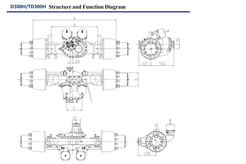 300H product is a two-stage wheel-side deceleration axle independently developed by Dongfeng Dana Axle to meet the requirements of high horsepower, large ground clearance, overload and large output torque of heavy commercial vehicles, with a maximum output torque of 55,000N.m.