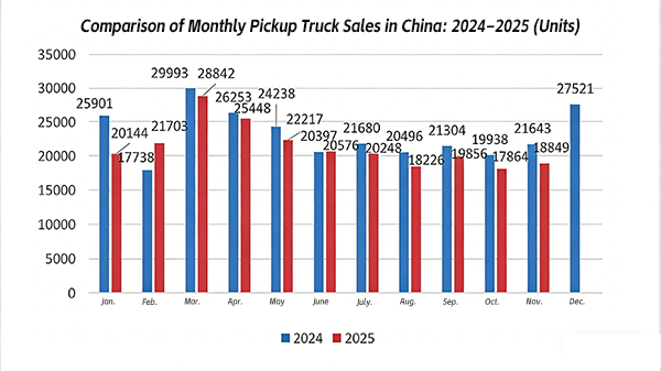 China Pickup Truck Sales Fall 12.9% in November to 18,849 Units