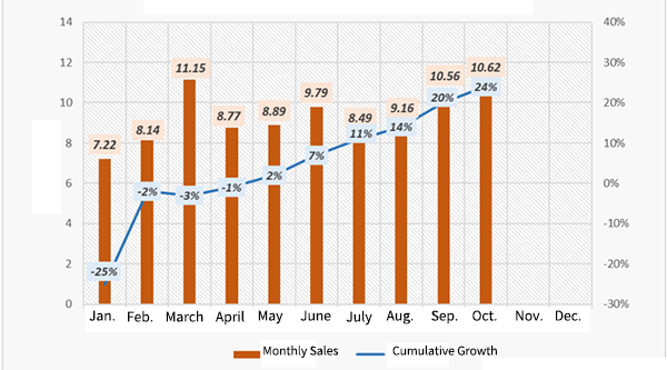 The sector recorded back-to-back strong months in September (105,600 units) and October (106,200 units), with year-on-year growth of 83% and 60% respectively.
